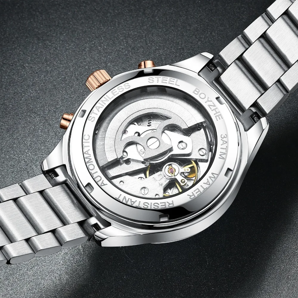 Discount BOYZHE 2018 New Men Automatic Mechanical Watch Stainless Steel Fashion Luxury Brand Military Waterp